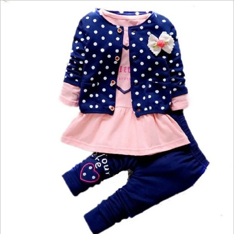 أرغب في شراءمعلومات اضافية 2018 جديد أزياء الاطفال ربيع جديد الكورية موجة نقطة الملابس مجموعة ملابس تناسب الاطفال الطفل بنات لطيف القطن الكرتون 3 قطع دعوى