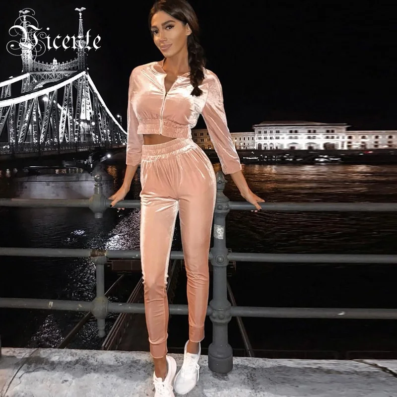 فيسنتي الساخن 2019 جديد عصري المحاصيل أعلى الجبهة زيبر مثير الخامس الرقبة طويلة الأكمام الجملة ملابس للنادي قطعتين بدلة مخملية
