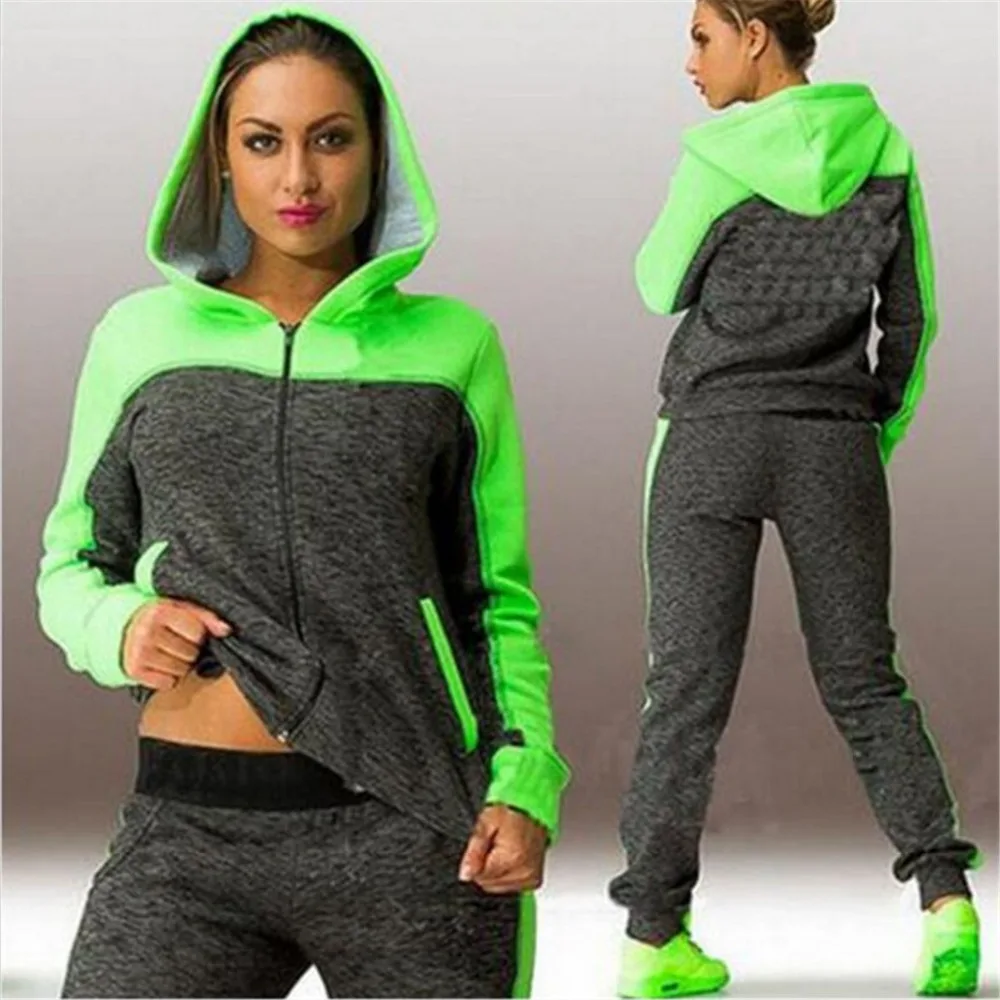 المنتجات ذات الصلة ل Suits و عالية الجودة 4XL رياضية معطف بقلنسوة دعوى مجموعة الأخضر ضئيلة عارضة ملابس حريمي الرياضية اللياقة البدنية تجريب مجموعة ملابس حريمي
