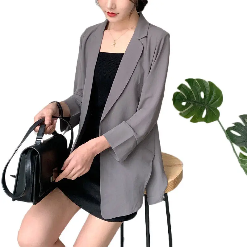 المنتجات ذات الصلة ل Suits و عارضة الكورية الشيفون سترة المرأة سترة الربيع الصيف الصلبة دعوى السيدات قميص فضفاض رقيقة معطف واقية من الشمس محبوك قمم f615