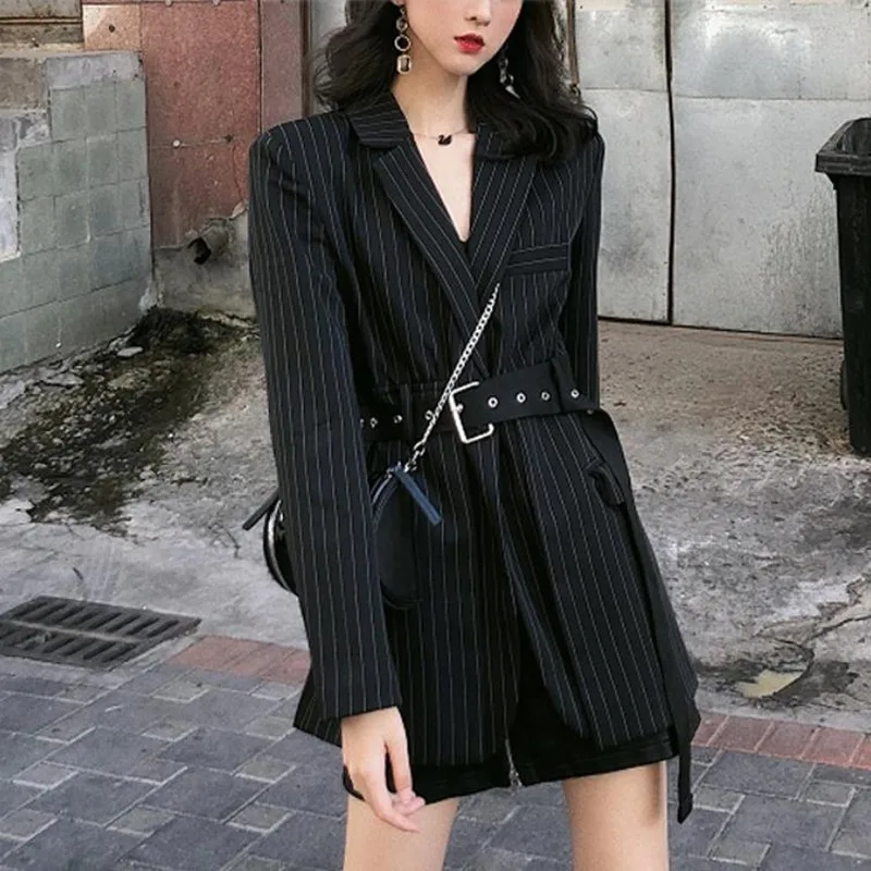 وانت porشراء Suits, luego شريط المرأة طويلة الحلل سترة طويلة الأكمام فضفاضة الزنانير شيك الكورية الأزياء رداء غير رسمية 2019 جديد الربيع الملابس es posible efectuar please