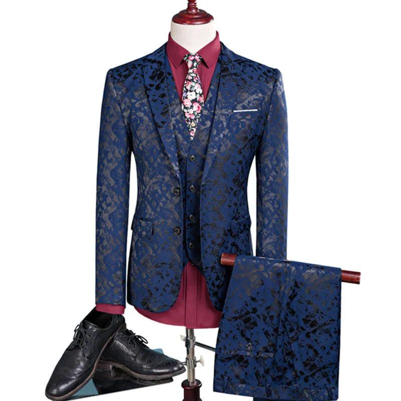 جديد الرجال الترفيه وحيد الصدر الدعاوى 3 قطعة مجموعات/الرجل لون نقي بدلة عمل سترة الحلل معطف + سترة + السراويل