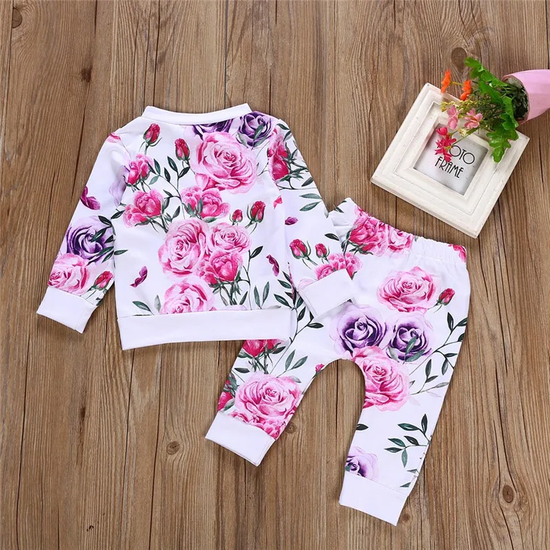 المنتجات ذات الصلة ل Suits و طفل الخريف الشتاء دعوى الملابس الأزهار الكامل كم س الرقبة تي شيرت قمم + السراويل 2 قطعة ملابس خروج مجموعة روبا الفقرة adolecentes