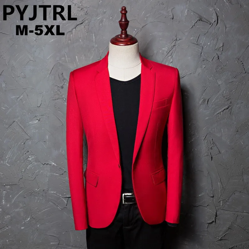 معرض من PYJTRL العلامة التجارية الرجال عارضة حلة حمراء سترة زائد حجم 4XL الزفاف ملابس رجالي تلائم الرجل النحيف سترة ازياء المسرح ل المطربين زي أوم
