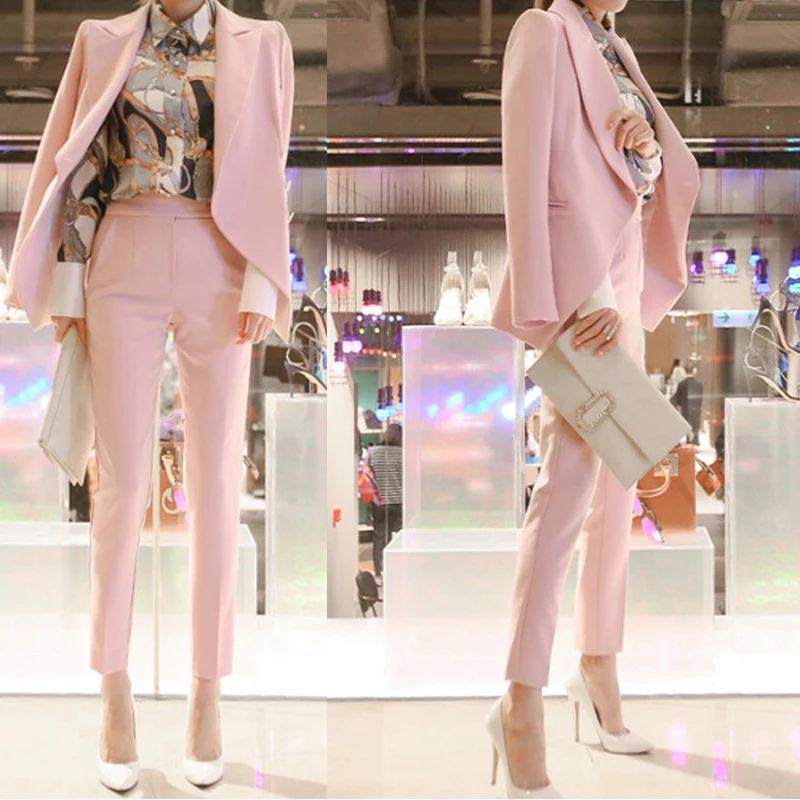 صور من زائد حجم النساء أزياء ضئيلة سترة بانت الدعاوى واحدة الصدر سيدة مكتب العمل ارتداء 2 قطعة المرأة مجموعة الربيع الخريف جديد 2019
