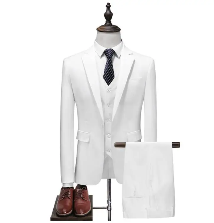 معرض ل الأبيض الرجال الرسمي مخصص الدعاوى الزفاف سهرة عارضة الرجال الأعمال أحدث الدعاوى الأزياء عشاء حفلة موسيقية 3 قطع سترة سترة السراويل