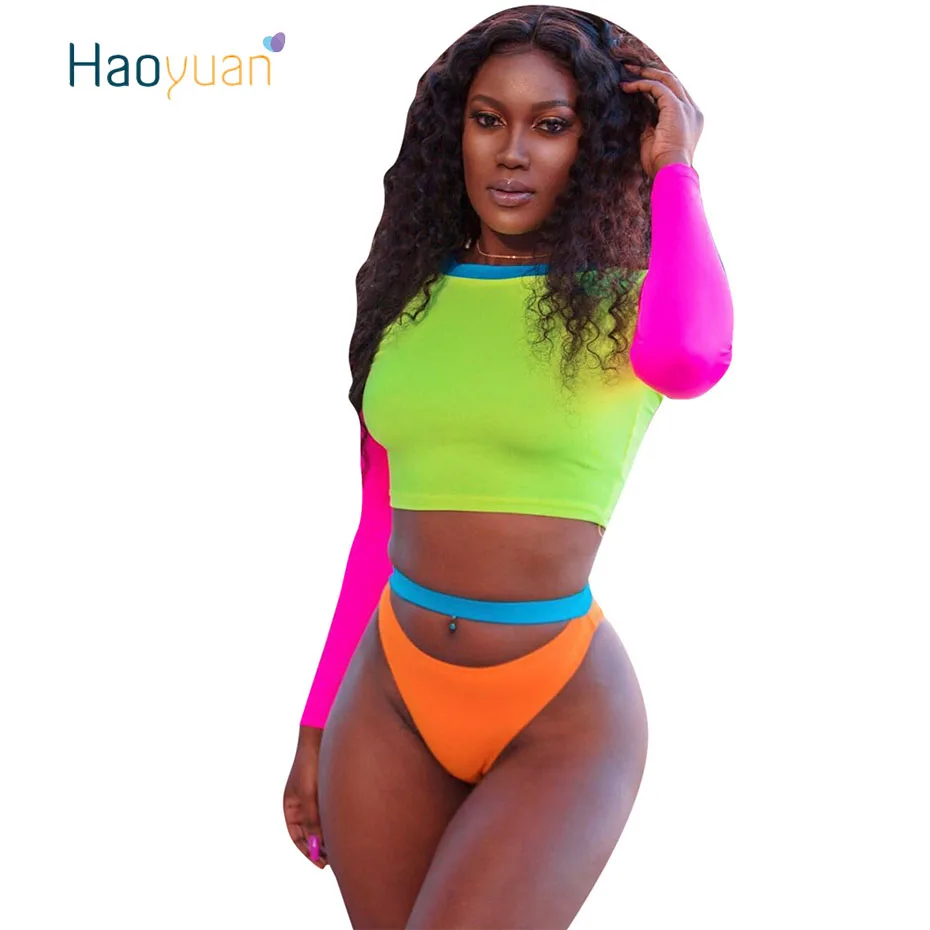 المنتجات ذات الصلة ل Suits و HAOYUAN النيون الأخضر مثير اثنين من قطعة مجموعة الصيف الشاطئ من Culb وتتسابق المحاصيل قمم + السراويل مجموعات زائد حجم النساء 2 قطعة مطابقة الدعاوى